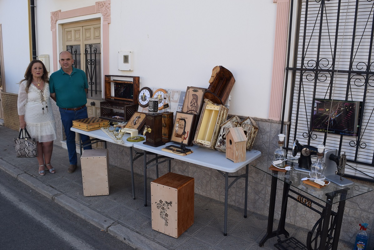 En la Plaza Virgen de los Dolores, se instaló un mercadillo de productos artesanales de la localidad, donde vecinos han mostrado sus trabajos y manualidades.