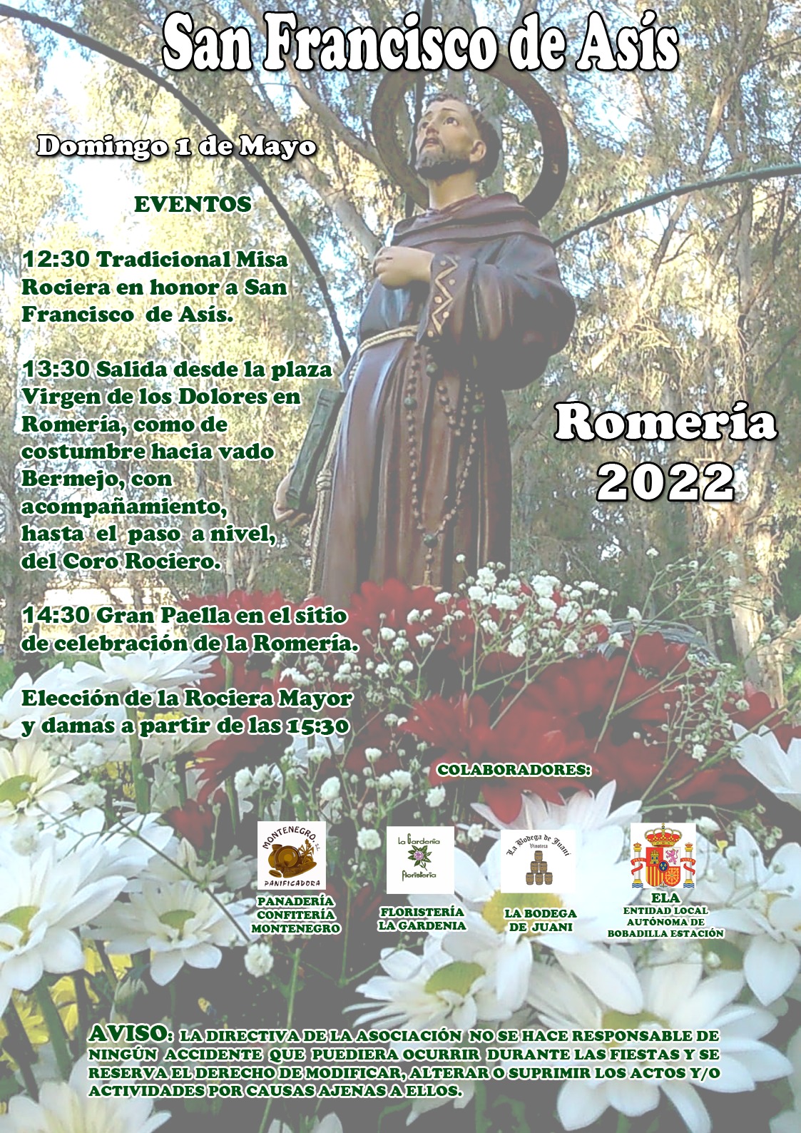 12:30.- Tradicional Misa Rociera en Honor a San Francisco de Asis.