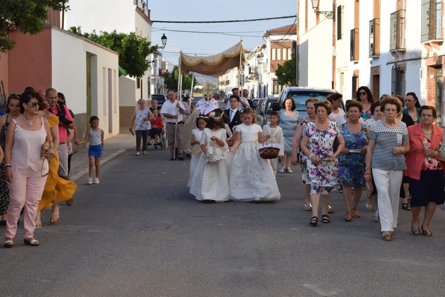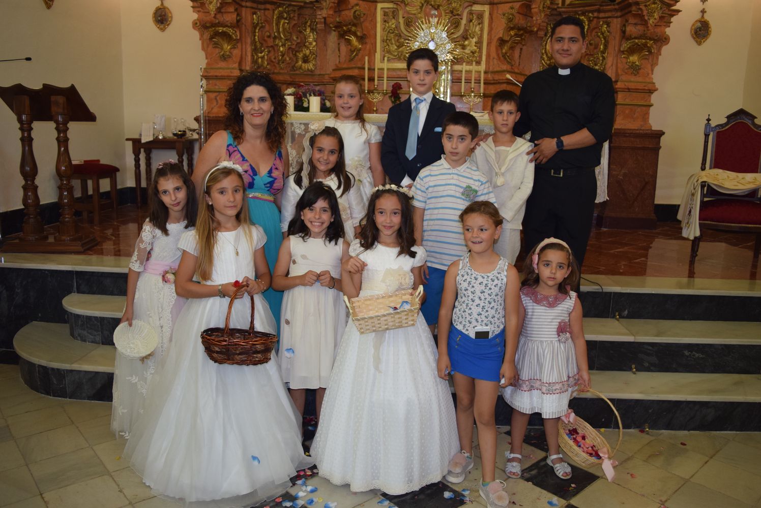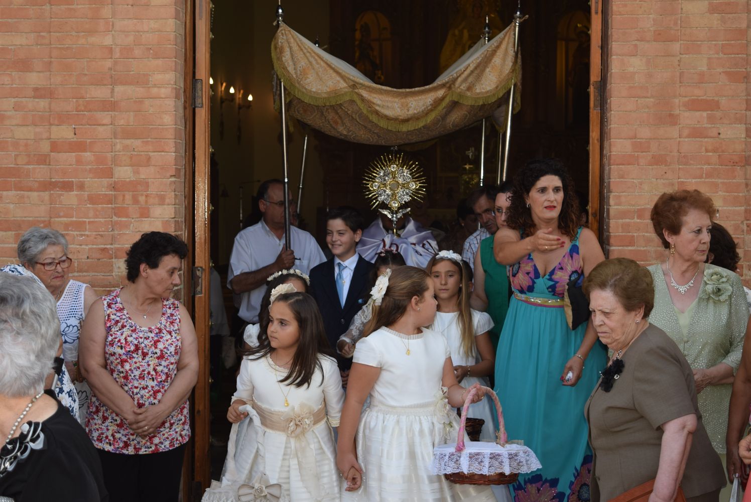 Los niños y niñas que tomaron su Primera Comunión este año acompañaron al Santísimo tanto en la misa como en la procesión como es tradicional, arrojando pétalos de flores por el recorrido de la procesión del Corpus Christi.