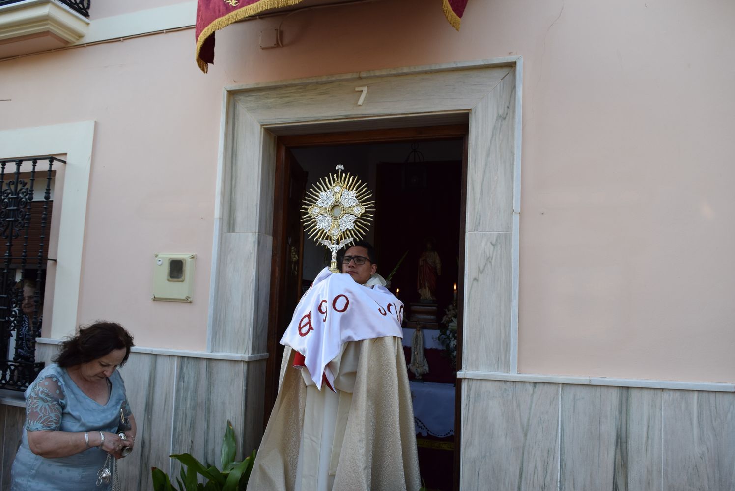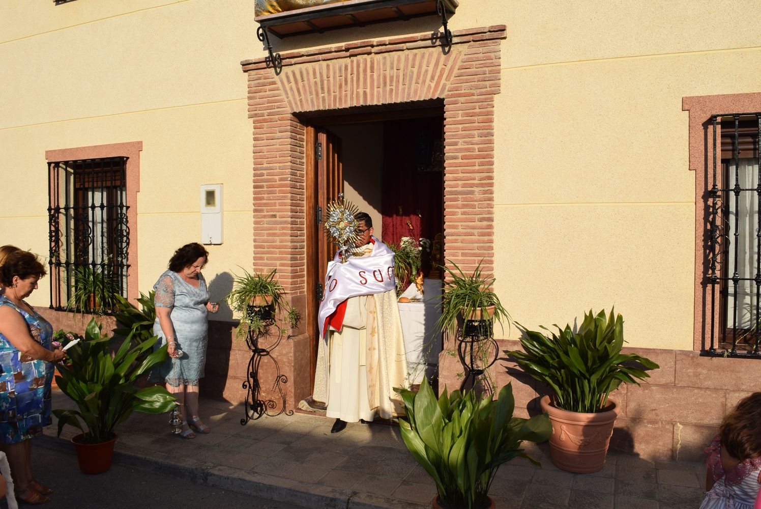 Vecinos de la Parroquia de Bobadilla Estación, colaboraron construyendo los típicos altares, en los portales de sus casas, y donde al paso de la procesión, con canticos y rezos en todo el recorrido del Corpus Christi, el Párroco D. Juan Pablo bendijo cada uno de estos altares, pidiendo por los pobres y los enfermos.