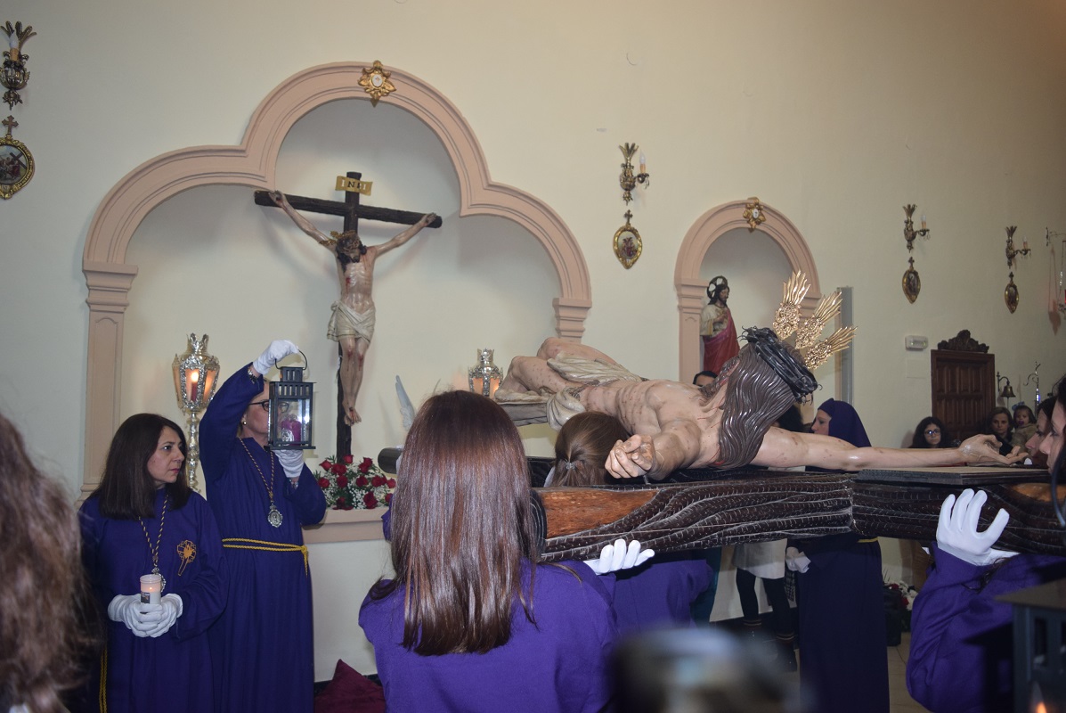 Hoy domingo, tras el ensayo de los porteadores/as, donde se han trasladado los tronos de la Virgen de los Dolores y Cristo de las Almas, ha tenido lugar en la Parroquia de Ntra. Sra. de los Dolores de Bobadilla Estación, el Traslado Claustral y Entronización del Sagrado titular de la Hermandad de los Dolores, el Smo. Cristo de las Almas, en un acto en el cual han participado las Porteadoras del trono, y que dio comienzo a las 13:00 horas, la santa Imagen tras el acto de traslado, ha quedado colocada en el trono. Una escena que hace presagiar la inminente llegada del Viernes de Dolores, que se vivirá con gran entusiasmo en el seno de la agrupación parroquial.