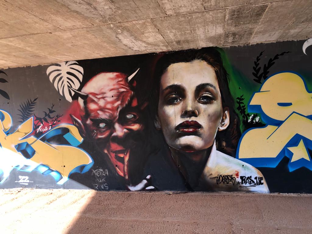 Ahora bien, cuando como en este caso, el autor o autores, marcan estos espacios abiertos, como como son estos interiores de puentes, con verdaderas obras pictóricas ,( seguramente dentro de la ilegalidad ), refrescan el paisaje y hacen pasar algunos minutos observando hasta el más mínimo detalle, cosa que también hay que destacar, es que no han dejado ni rastro de basura esparcida por las inmediaciones, como bolsas de plástico, botellas etc.