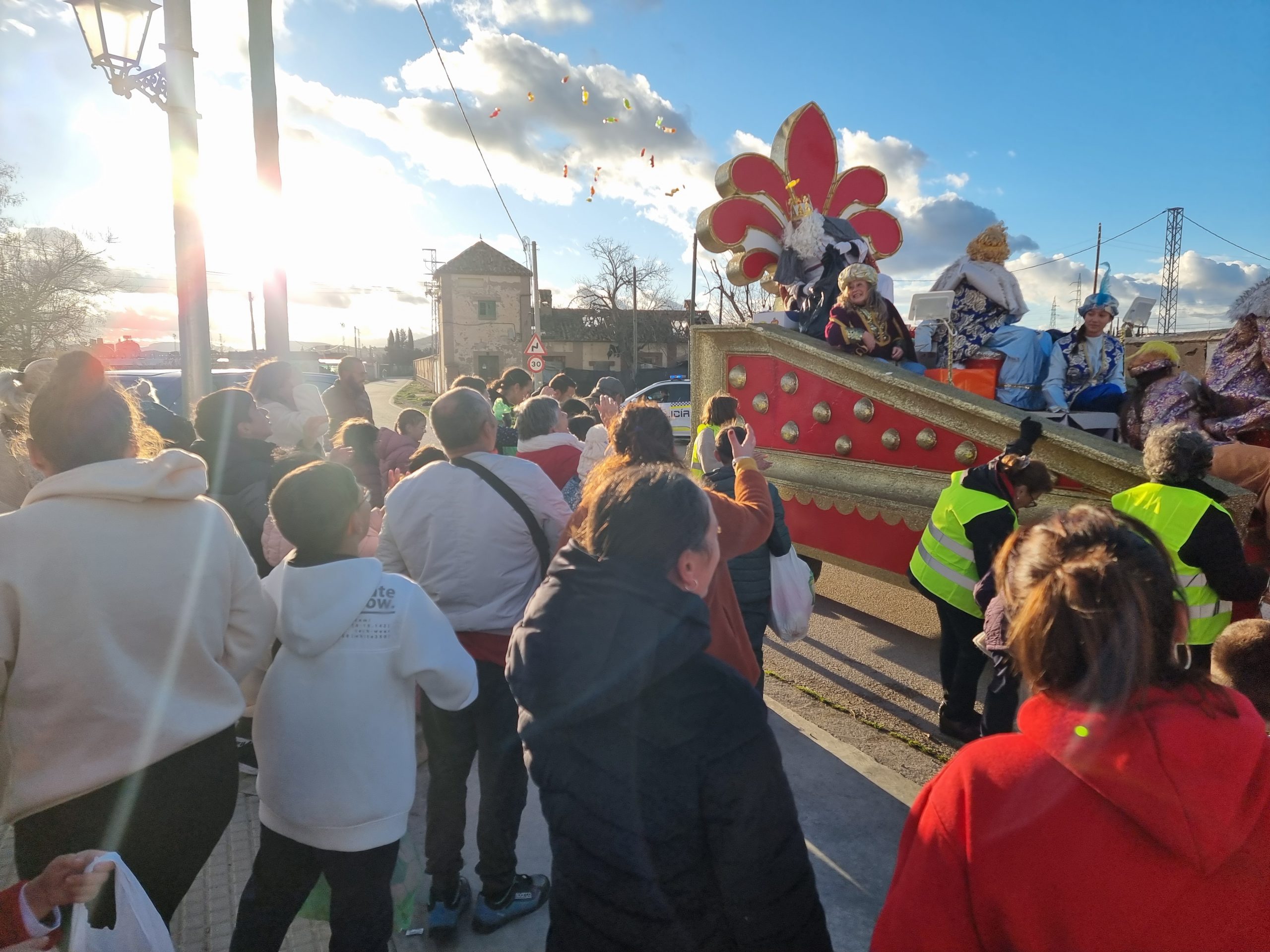 Después, continuaron su camino hacia Bobadilla Estación, donde la expectación de los niños era igualmente conmovedora. La emoción de recibir a los Reyes en Bobadilla Estación fue un momento cumbre de la tarde. La carroza, adornada con destellos y colores vibrantes, avanzaba entre las calles mientras los niños recogían con entusiasmo los regalos y caramelos lanzados por sus majestades.